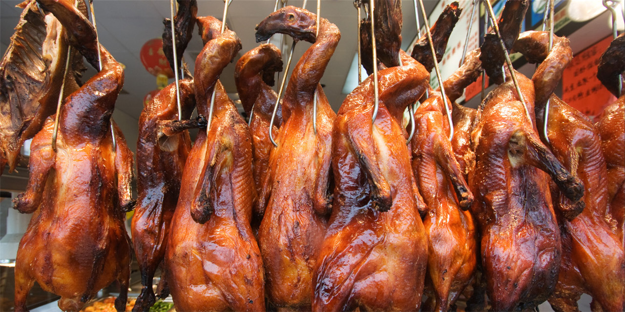 Yung Kee located on Wellington street in Central is famous for it's roast goose, but does fantastic roast duck and pork as well.